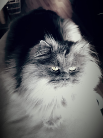Nadat onze geliefde Birmaan kater Obelix overleed, konden we niet zo lang zonder kat. We zochten op internet, bezochten fokkers en vonden bij toeval Chico, een Britse langharige kater. Omdat hij zijn huis vlakbij ons had, reden we op 2 augustus naar hem toe. Tot onze schrik vonden we geen speeltjes, geen krabpaal, maar een ruig bundeltje bont dat lusteloos achter de televisie in de warmte lag.